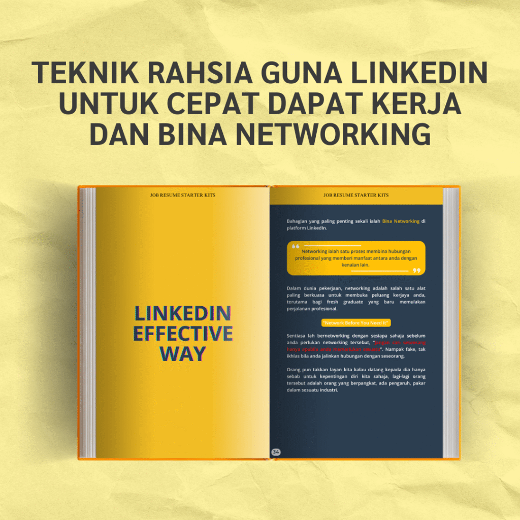 Tapi, Job Resume Starter Kits akan beri panduan kepada anda untuk bina NETWORKING supaya anda menjadi orang yang terpilih.